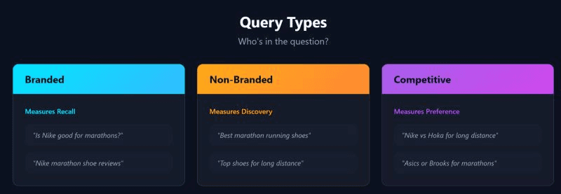 People do not ask AI about topics. They ask questions. And the way those questions are framed changes both which brands appear and how they are positioned.