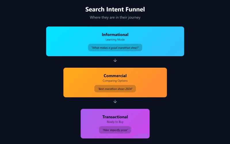Intent matters because AI responses change as users move closer to a decision. Brands that show up early are not always the ones that close.